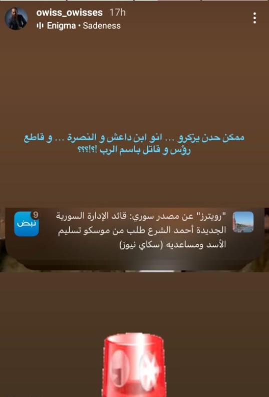 أويس مخللاتي، الذي يعيش منذ سنوات خارج سوريا ويتزوج من أجنبية، استغل منصة إنستغرام ليوصل صوته ومعاناته تجاه ما يحدث في بلده. إن هذه التصريحات تظهر التحديات التي يتعرض لها الفنانون في التعبير عن آرائهم في زمن صعب، حيث يكتسب الإعلام الاجتماعي دورًا متزايد الأهمية في حياتهم. فهل ستتبع هذه التصريحات خطوات أخرى في الساحة السياسية السورية؟