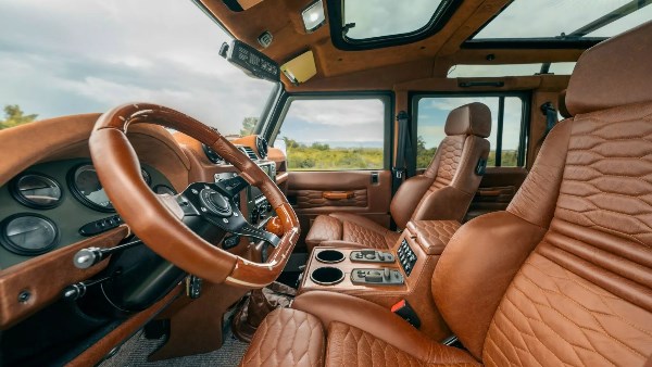 من النظرة الأولى، ستأخذك لاندروفر ديفندر الجديدة إلى عالم آخر من الأصالة. المقاعد الجلدية الفاخرة التي تخيطها غرز مخصصة بدقة، واللمسات الخشبية المصنوعة من خشب الجوز الأفريقي على عجلة القيادة ومقبض ناقل السرعة، تنقل روح السيارات البريطانية العريقة إلى قلب كل من يجلس خلف مقودها.
