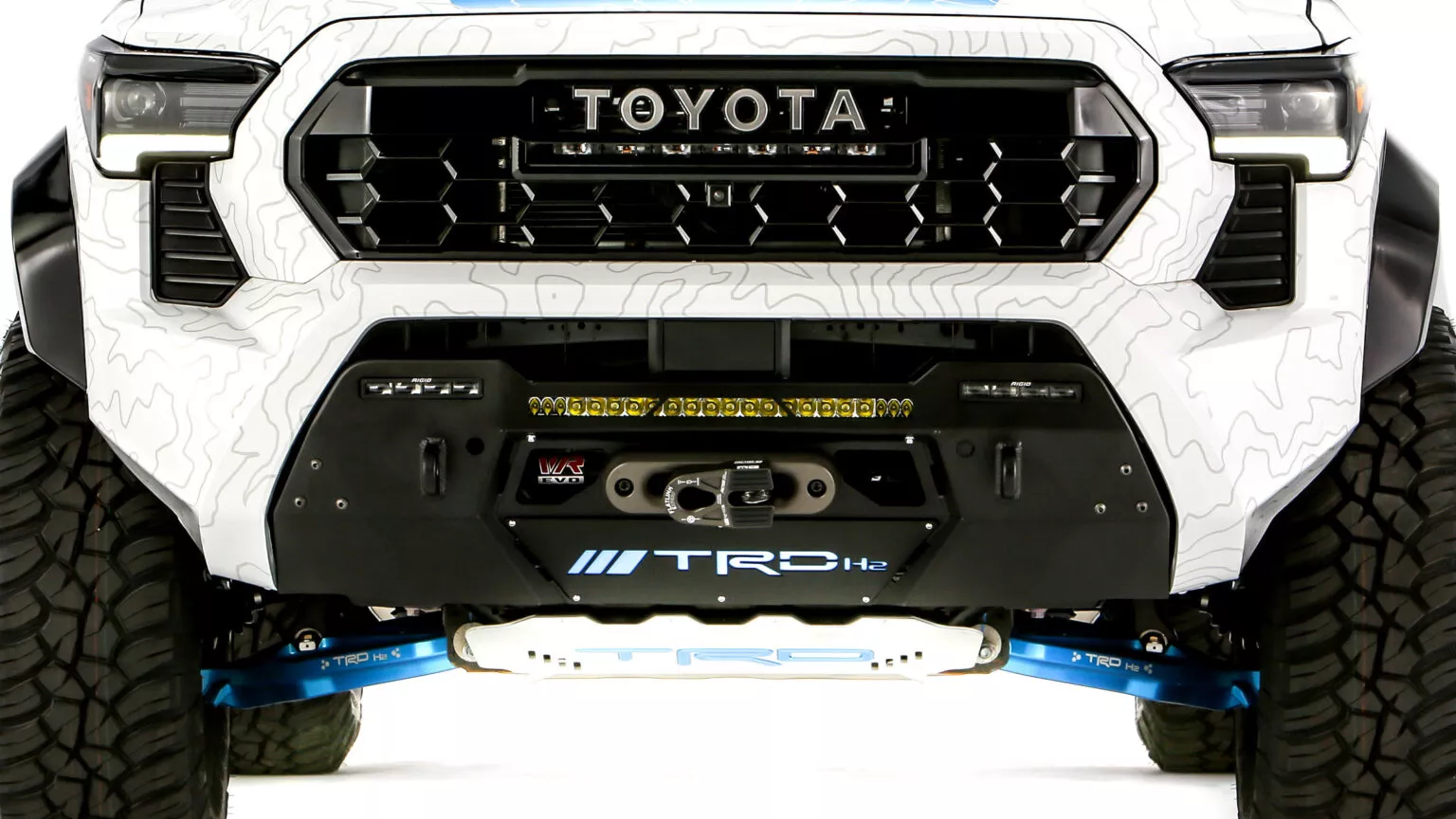 تأتي تويوتا تاكوما H2 Overlander كنسخة مخصصة للمغامرات والرحلات البرية، وتعتمد على نظام خلايا وقود هيدروجينية إلى جانب بطارية ليثيوم أيون ومحركين كهربائيين، ما يجعلها مركبة صفرية الانبعاثات بالكامل.