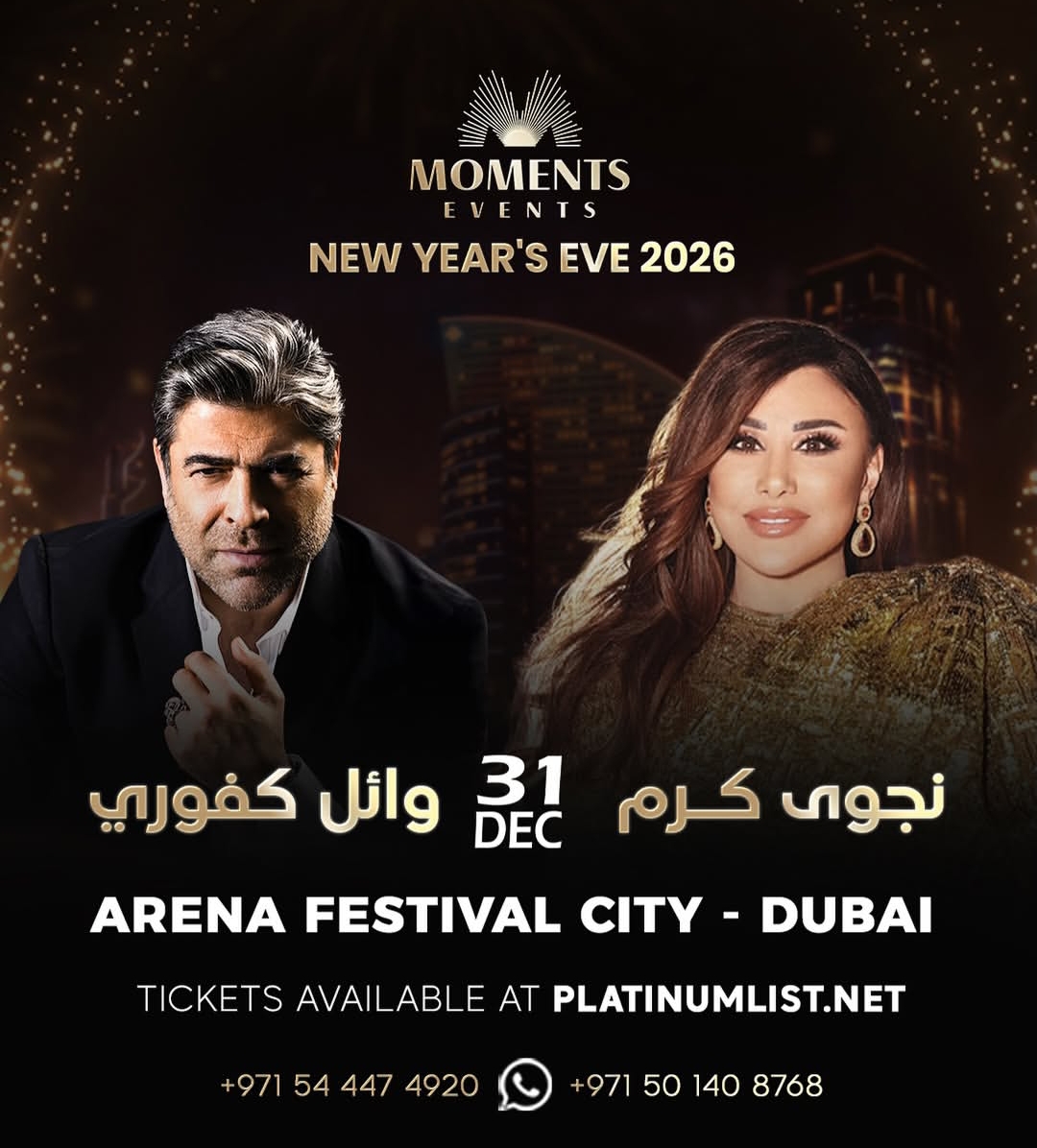 وتُواصل نجوى كرم لقاء الجماهير العربية في جولتها الغنائية، إذ تلتقي جمهورها في دولة قطر مساء 28 نوفمبر 2025 على مسرح المياسة – مركز قطر الوطني للمؤتمرات، قبل أن تختتم عامها بحفلٍ ضخم تستقبل فيه العام الجديد2026  إلى جانب النجم اللبناني وائل كفوري في Arena – Festival City  بدبي، في ليلةٍ يُتوقّع أن تجمع محبّي النجمين من مختلف الدول العربية، للاحتفال بقدوم عامٍ جديد على أنغام الفرح والموسيقى.