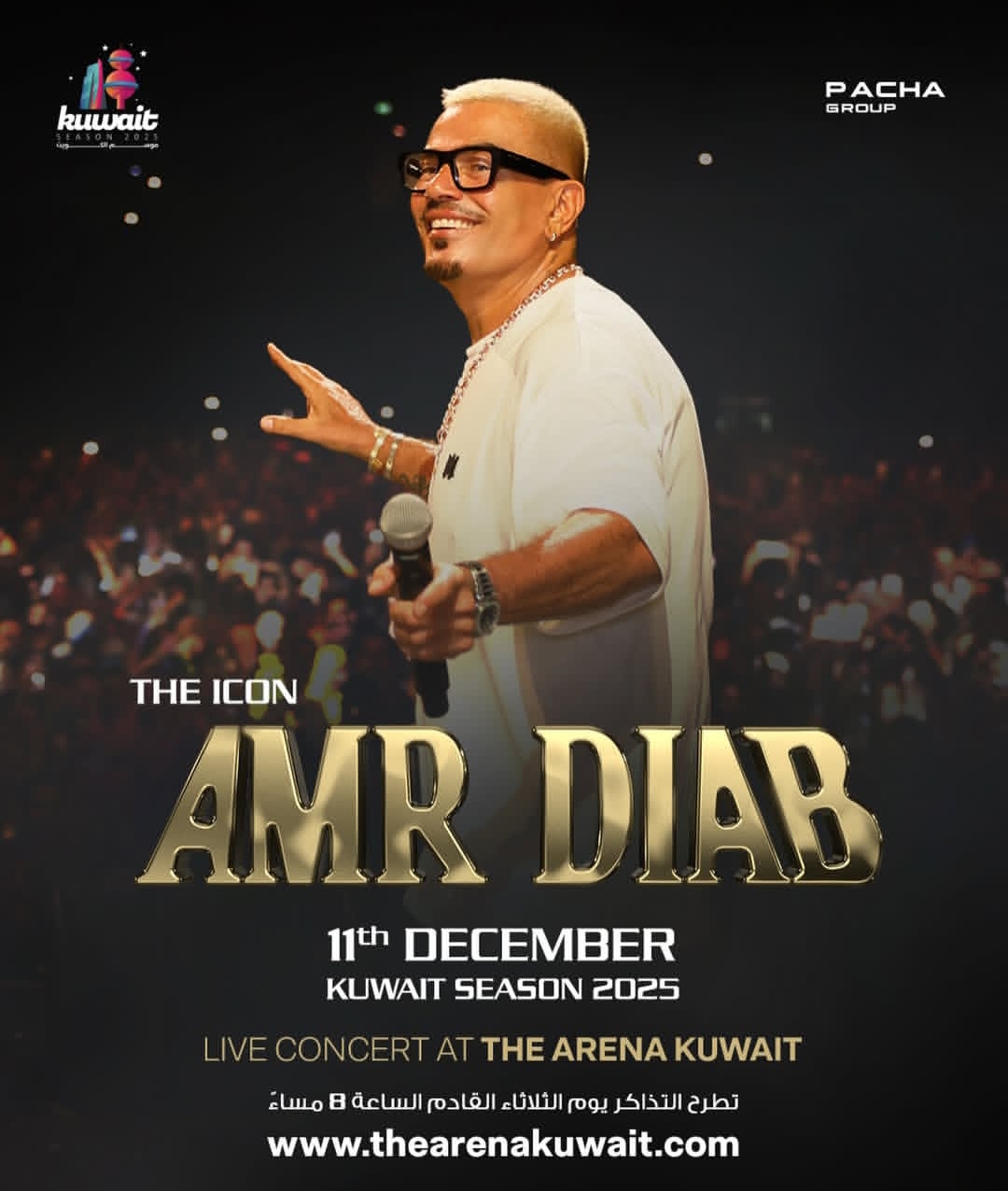 يستعد الفنان عمرو دياب، لإحياء حفل غنائي، على مسرح أرينا الكويت، بدولة الكويت، يوم 11 ديسمبر المقبل، ضمن سلسلة حفلات موسم الشتاء.