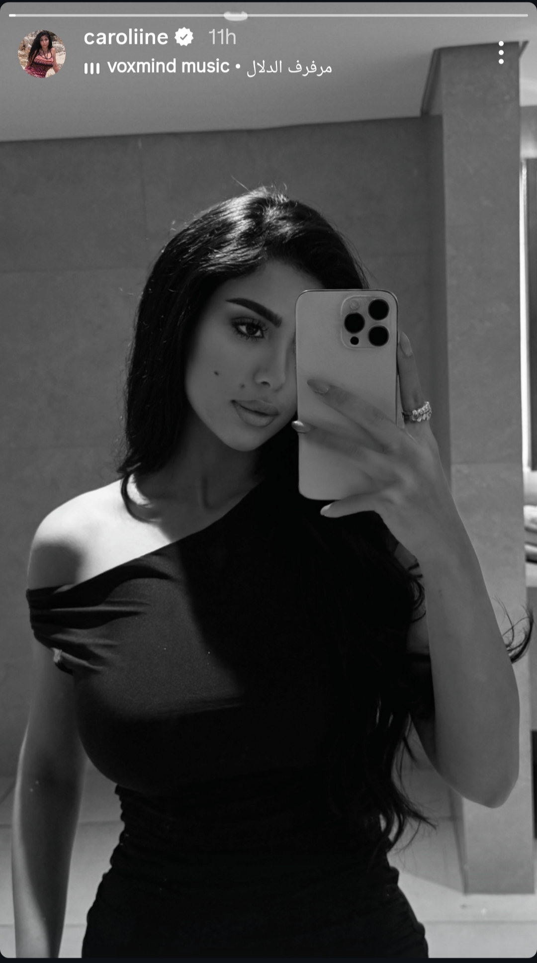 وظهرت كارولين في الصورة بإطلالة لافتة مرتدية فستان أوف شولدر باللون الأسود مما حازت الصورة علي أعجاب متابعيها.